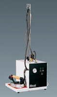 Semi-automatic steam generator with 1 industrial iron, water filling manually, with steam volume adjusting solenoid valve knob. Equipped with silicone iron mat and antenna for holding up the iron cables. Steam capacity 1,25 kg/hour, 0,8 kW heating element, 2 liter water capacity, steam pressure max. 2,7 bar, electric connection 230 V-50 Hz.